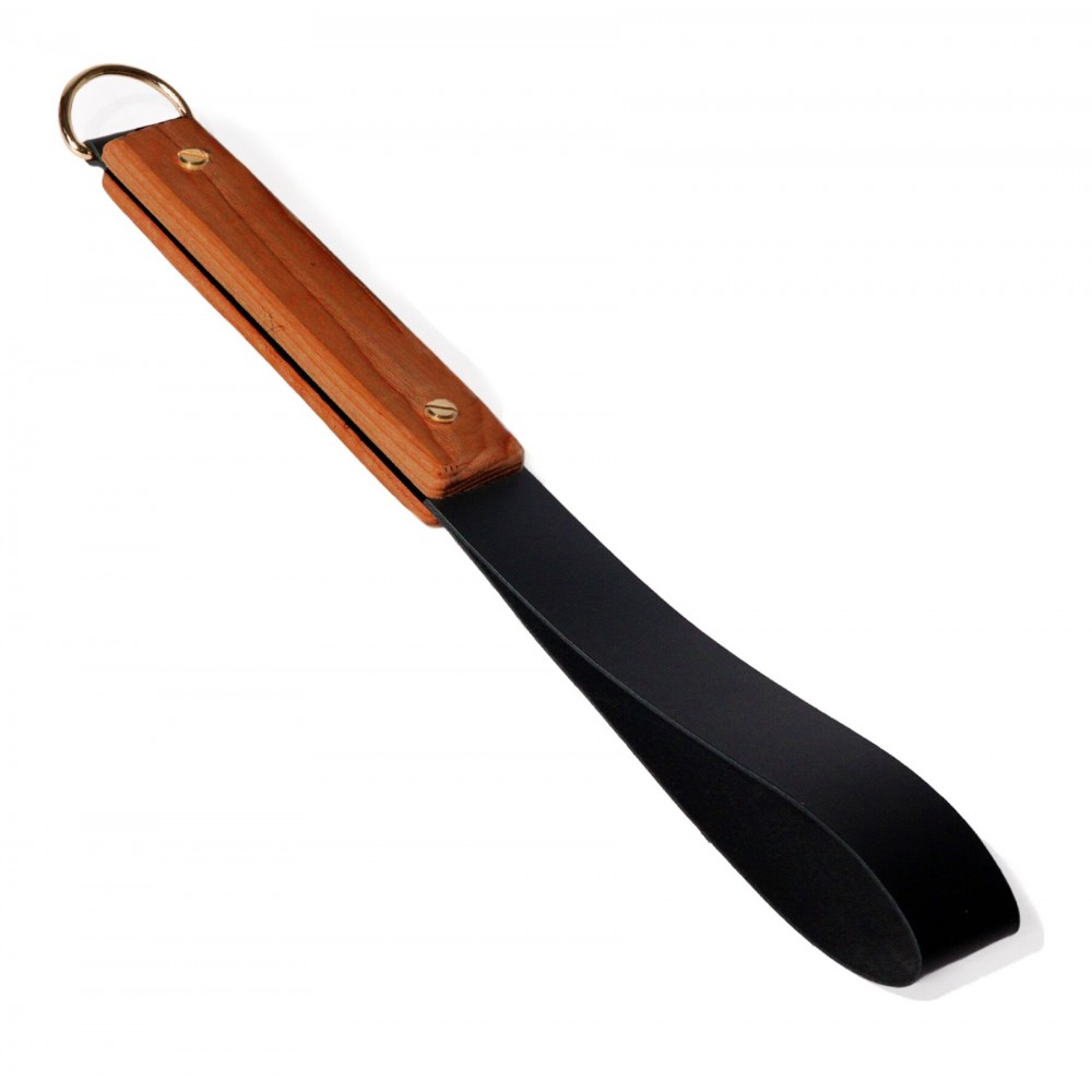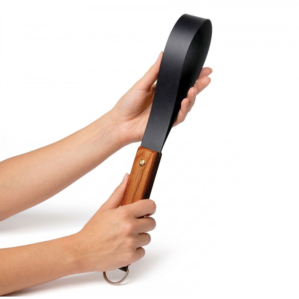 Эта модель — про баланс эстетики, контроля и ощущений. Кожаная шлепалка Deniro от Art of Sex выглядит лаконично и уверенно, сразу задавая нужное настроение. Широкая черная кожаная лопасть обеспечивает плотный, выразительный удар с глубоким звуком, при этом позволяя точно контролировать силу — от легкой игры до более интенсивных ощущений.
