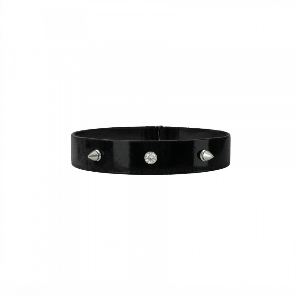 Минималистичный чокер с жесткой формой подчеркивает линию шеи и добавляет образу выразительности. Лаконичный дизайн с металлическими элементами создает уверенный акцент без лишних деталей.