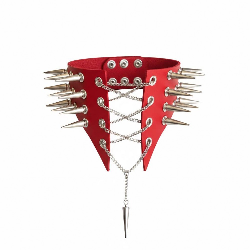 Боковые шипы добавляют агрессии и характера — это деталь, которая работает с любого ракурса. Спереди — провокационная шнуровка на цепях. Переплетение металла создает напряжение, усиливает драму и притягивает взгляд к центру композиции. Подвеска добавляет динамики — при движении она ловит свет и усиливает эффект.