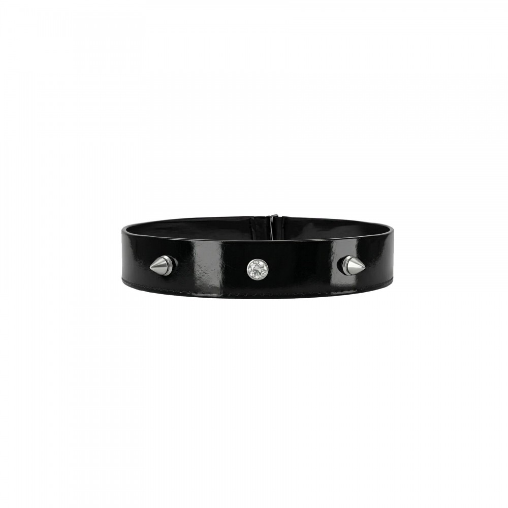 Минималистичный чокер с жесткой формой подчеркивает линию шеи и добавляет образу выразительности. Лаконичный дизайн с металлическими элементами создает уверенный акцент без лишних деталей.