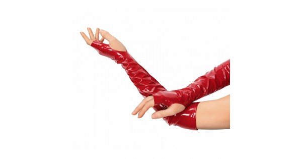 Эти виниловые митенки — чистый характер. Длинные, глянцевые, с открытыми пальцами — они вытягивают силуэт рук и добавляют образу хищной уверенности. Плотный винил красиво облегает кожу, создавая эффект второй кожи с зеркальным блеском.