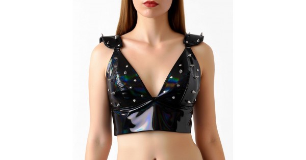 Оформить заказЭффектный виниловый топ Mistress создан для смелых образов и уверенного самовыражения. Глубокий V-образный вырез подчеркивает линию декольте, а плотная посадка формирует выразительный силуэт. Декоративные металлические шипы на чашках и плечах придают..