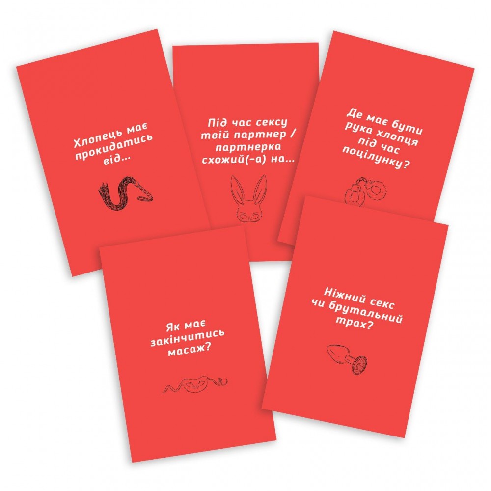 Колода карточек с вопросами, охватывающими разные сферы жизни: от забавных бытовых мелочей до пикантных и глубоких тем.