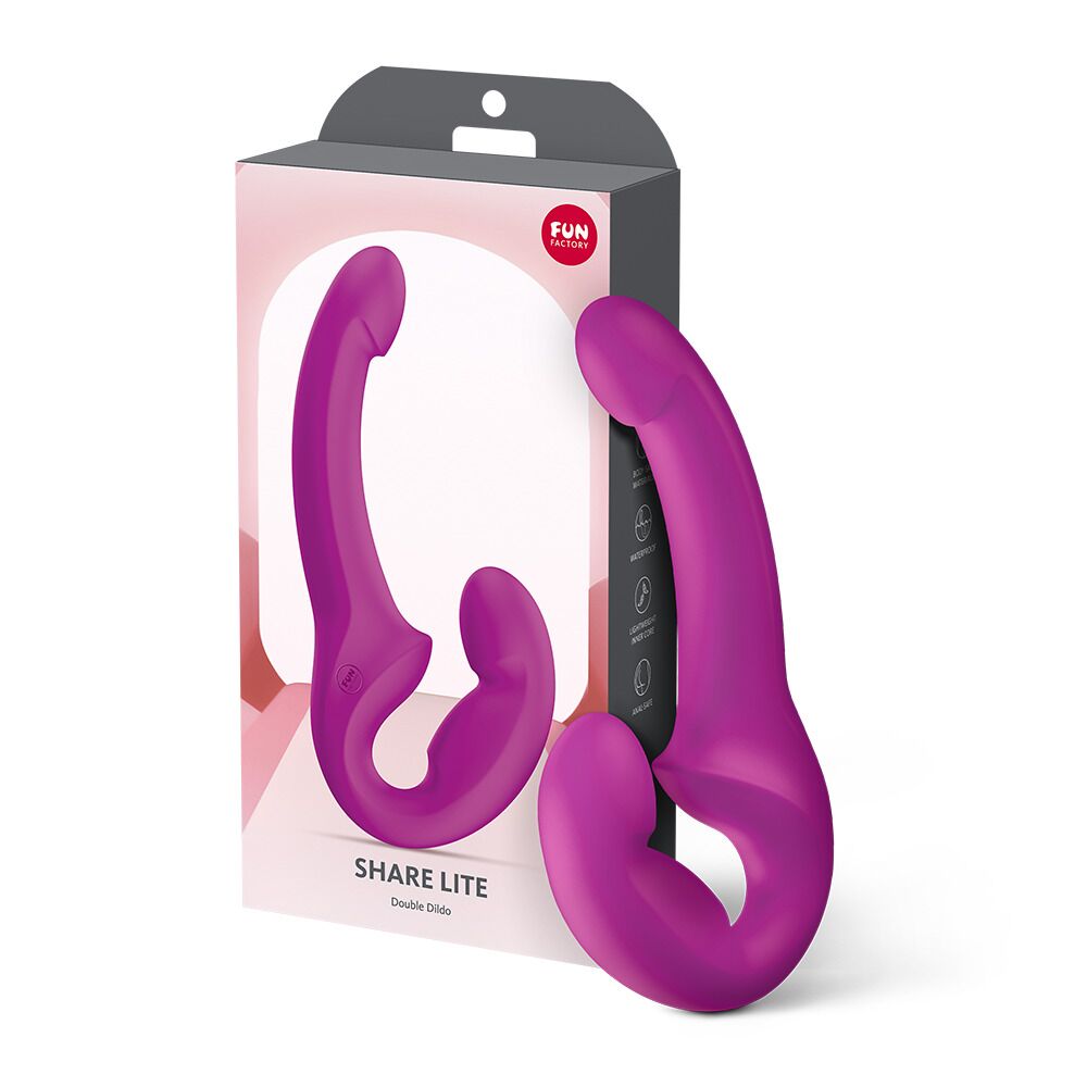 На 22 % легче, чем Fun Factory SHARE VIBE PRO! Предлагаем купить безремневой страпон Fun Factory SHARE LITE — легкий, комфортный, анатомически верный и не требующий специальных креплений. С такой игрушкой вы сможете быстро менять позу и получать стимуляцию эрогенных зон у обоих участников. Максимально естественные ощущения! Отлично удерживается на месте благодаря особому дизайну: вагинальная часть загнута, а наружная часть плотно прилегает к лобковой кости. Угол между двумя стволами регулируется, чтобы вы могли подстроить страпон под свою анатомию. Идеален для глубокого проникновения, ведь вводимая длина большей части составляет 16,5 см. Эргономичная конструкция — то, что нужно, чтобы расслабиться и получать совместное удовольствие!