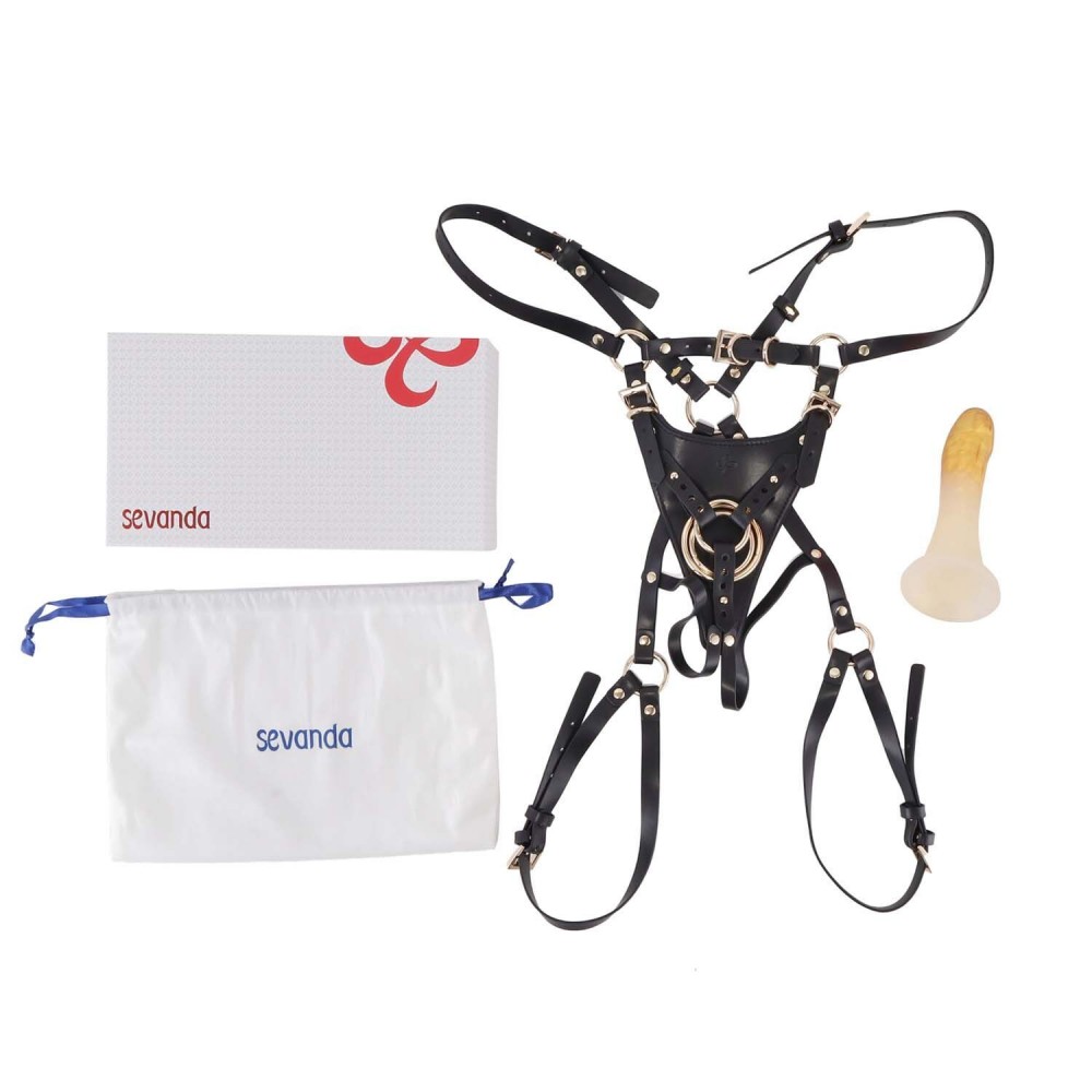 Страпон LOCKINK SEVANDA Queen Sheba Strapon Golden Dildo поможет вам открыть новые грани удовольствия. Этот комплект пригодится вам во время БДСМ-сессий или игр со сменой ролей. Забудьте про анатомические особенности тела: все, что ограничивает вас, — это ваша фантазия.