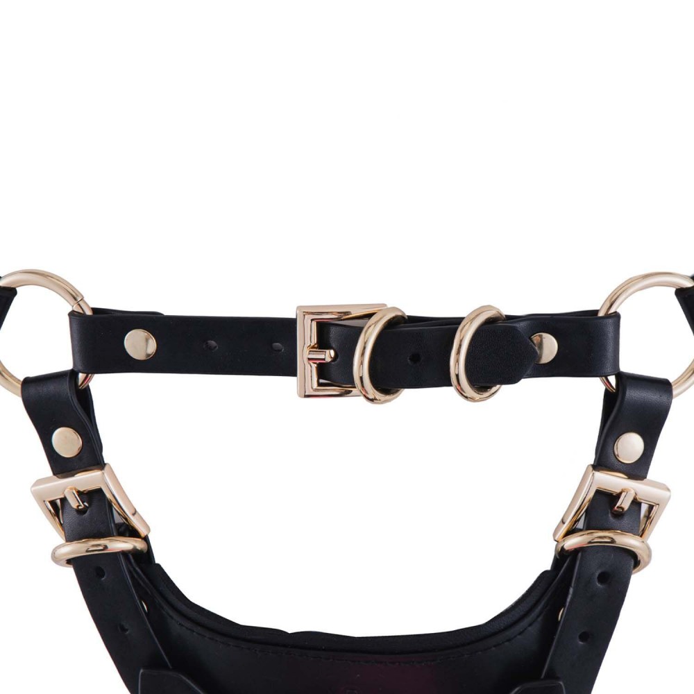 кольца крепятся на ремешках с заклепками — игрушки удобно фиксировать, даже когда «сбруя» уже надета;
